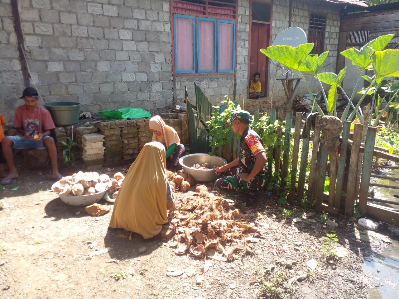 Komsos, bincang santai bersama yang dilakukan Babinsa Bilifitu, dengan Ibu-ibu UKM ini membahas terkait produksi minyak Kelapa manual didesa Bilifitu, Kecamatan Patani Utara, Kabupaten Halmahera Tengah.