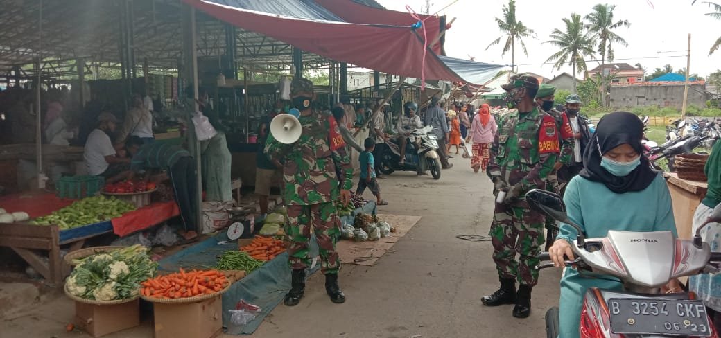 Dalam kegiatan Penegakan Disiplin Mematuhi Protokol Kesehatan (PDMPK) memutus rantai penyebaran covid-19 di pimpin oleh Pelda Pairan Anggota Koramil 01/Teluknaga.