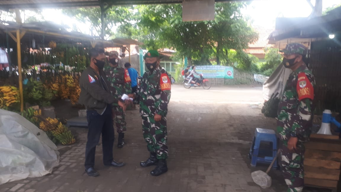 NASIONALXPOS.CO.ID, TANGERANG- Upaya dalam pengendalian penularan covid 19, Koramil 01/Tln Kodim 0510/Trs menggelar operasi yustisi dan PPKM (Pemberlakuan Pembatasan Kegiatan Masyarakat) di Pasar Mutiara Garuda Desa Kampung Melayu Timur Kecamatan Teluknaga Kabupaten Tangerang, Rabu (20/01/2021).