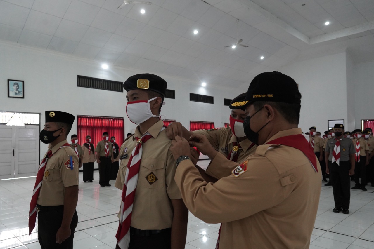 Latihan Bela Negara dan Kepramukaan ini dibuka oleh Kasiterrem 071/Wijayakusuma Mayor Inf Darul Quthni, S.Ag. mewakili Danrem 071/Wijayakusuma Kolonel Inf Yudha Airlangga, S.E., di Gedung Pertemuan A. Yani Makorem 071/Wijayakusuma, Sokaraja, Banyumas. Kamis (2/6/2022).