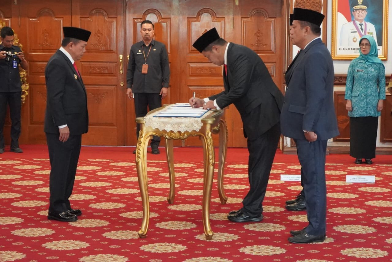 NASIONALXPOS.CO.ID, JAMBI – Gubernur Jambi Dr. H. Al Haris, S. Sos, MH mengukuhkan Penjabat Sementara (Pjs), di tiga wilayah Provinsi Jambi, bertempat di Auditorium Rumah Dinas Gubernur Jambi, Selasa (24/09/2024).