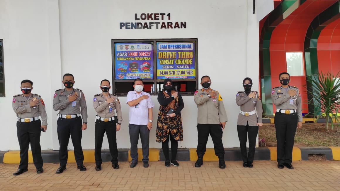 Dalam kunjungannya di sambut oleh Kanit Regident polres Serang Ipda Sri Sulistyoningsih S.TR.K , KAUPTD PPD Samsat Cikande Rita Prameswari SE,M.Si,  tampak Dirlantas Polda Banten Kombes Pol Rudy Purnomo melihat kesiapan para petugas Samsat Drive thru serta di selingi bincang bincang .