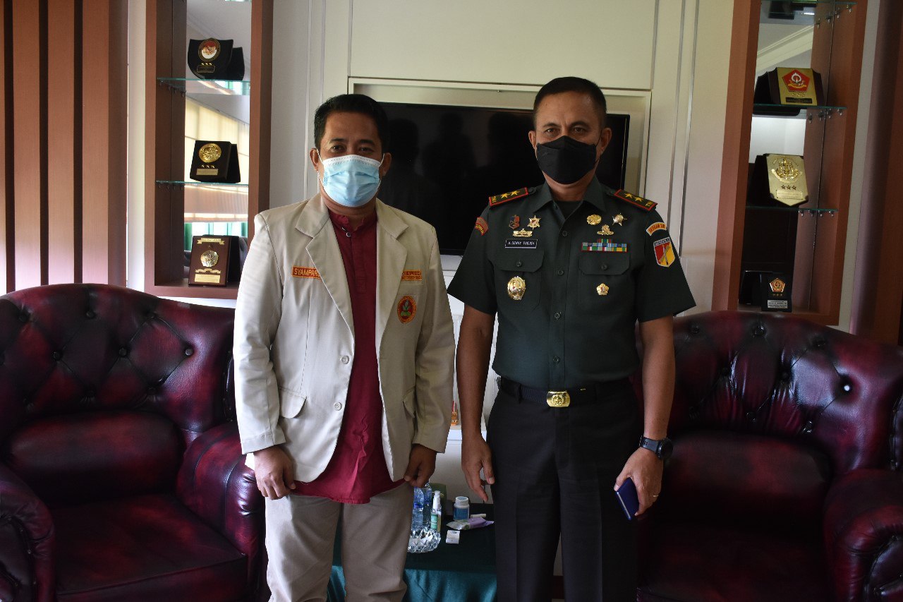 NASIONALXPOS.CO.ID, MANADO -Pangdam XIII/Mdk Mayjen TNI A. Denny Tuejeh menyambut kunjungan Ketua PWPM (Pimpinan Wilayah Pemuda Muhammadiyah) Sulawesi Utara, Syamfarudin, yang diterima di ruang kerjanya, Rabu (6/4/2022)
