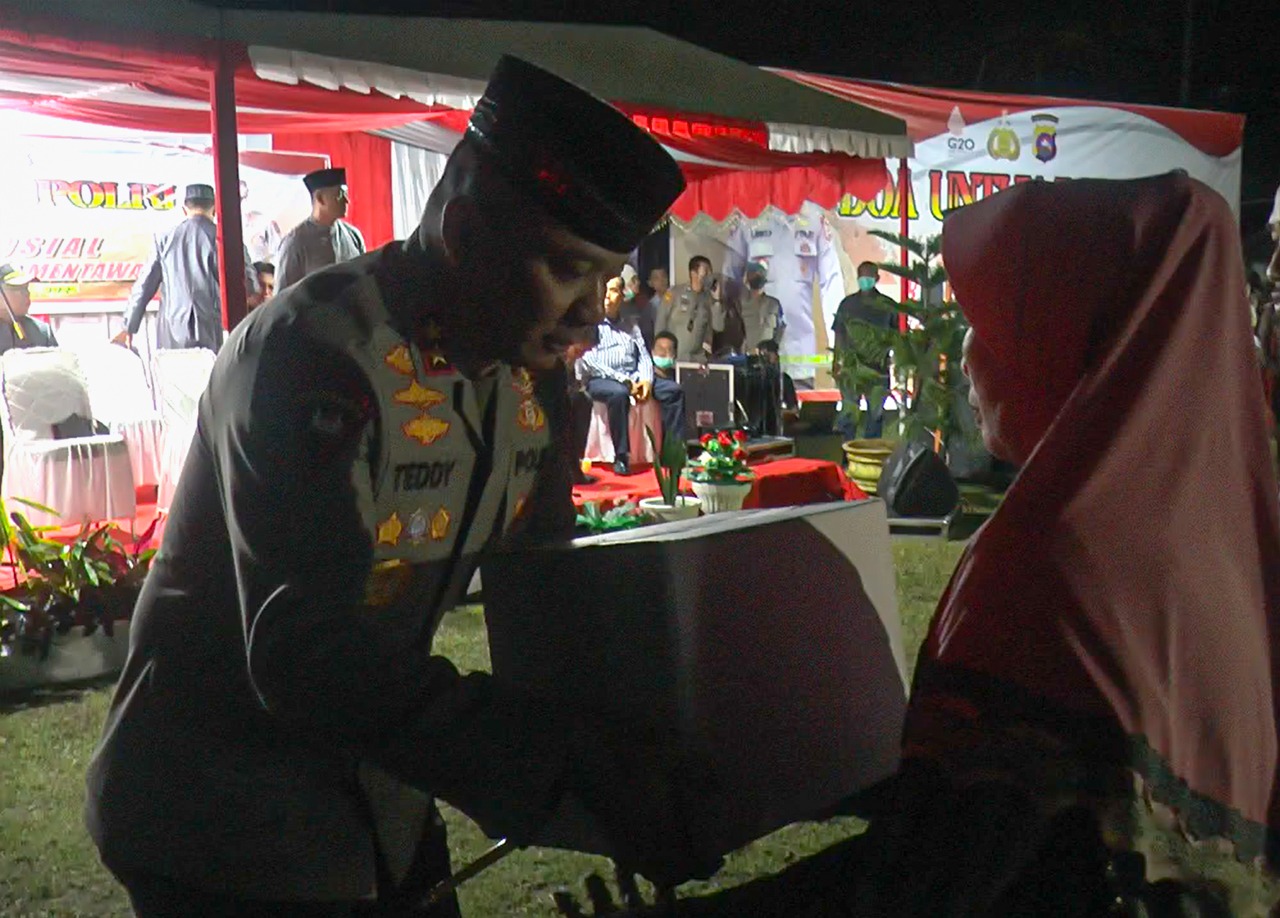 Bantuan ini diserahkan Kapolda Irjen Pol Teddy Minahasa sebanyak 2.750 paket, usai pelaksanaan doa bersama lintas agama, Selasa (6/9) di halaman Mapolres Kepulauan Mentawai.