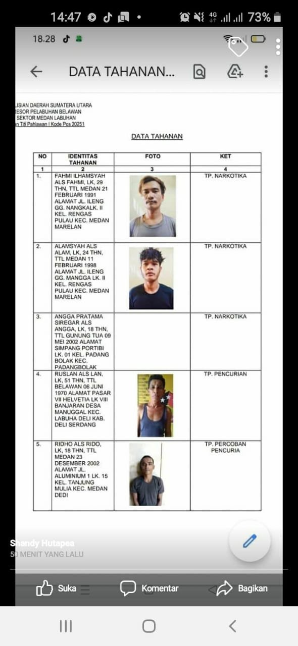 NASIONALXPOS.CO.ID, MEDAN LABUHAN || BELAWAN – Tahanan Polsek Medan labuhan Sumatera Utara kabur dari sel pada hari Selasa tgl 27 Juli pada jam 04.30 wib.