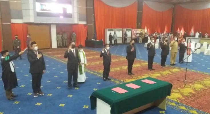 NASIONAL XPOS.CO.ID MANADO |Walikota Manado Andrei Angouw diwakili dr.Richard Sualang melantik Badan Pengawas dan jajaran Direksi PD Pasar dan Direksi PDAM Kota Manado Diruang serbaguna kantor Walikota, Selasa(13/7/2021)