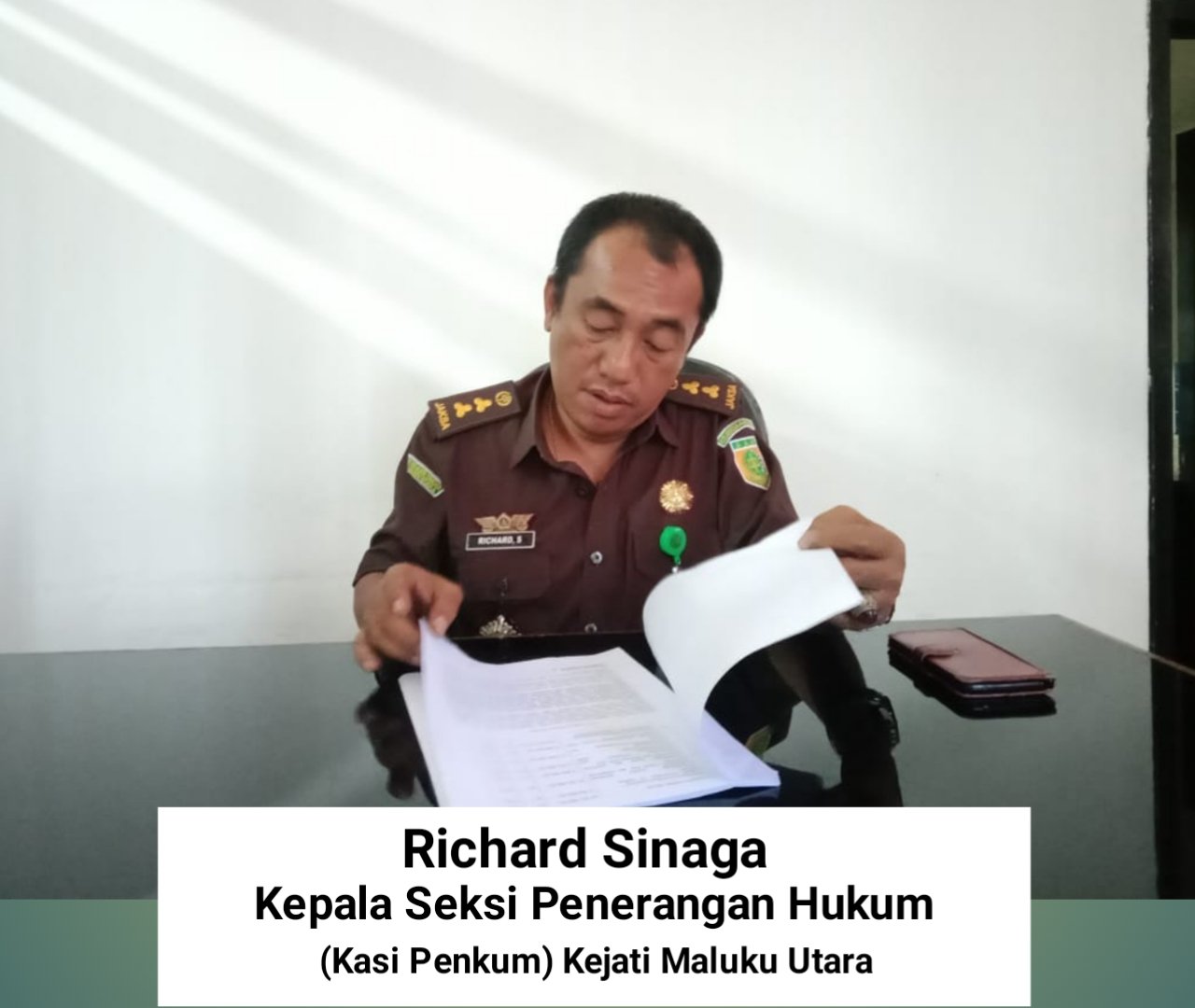 Kepala Seksi Penerangan Hukum (Kasi Penkum Kejaksaan Tinggi Maluku Utara (Kejati Malut) Richard Sinaga ditemui diruang kerjanya, Rabu (31/05/2023) mengaku laporan Dana Desa Nuku yang disampaikan HIPMAN telah didisposisi Kepala Kejaksaan Tinggi Maluku Utara,” Akui Richard.