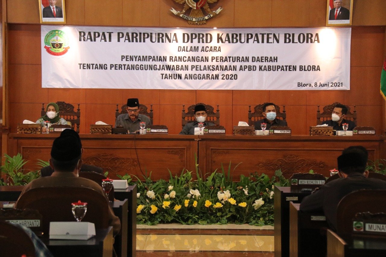 Wakil Bupati Blora Tri Yuli Setyowati, mewakili Bupati Arief Rohman, menyerahkan Ranperda tentang Pertanggungjawaban Pelaksanaan APBD Tahun Anggaran 2020 kepada DPRD Kabupaten Blora. Dan selanjutnya sebagai bahan pembahasan DPRD Kabupaten Blora, serta dilakukan persetujuan bersama.