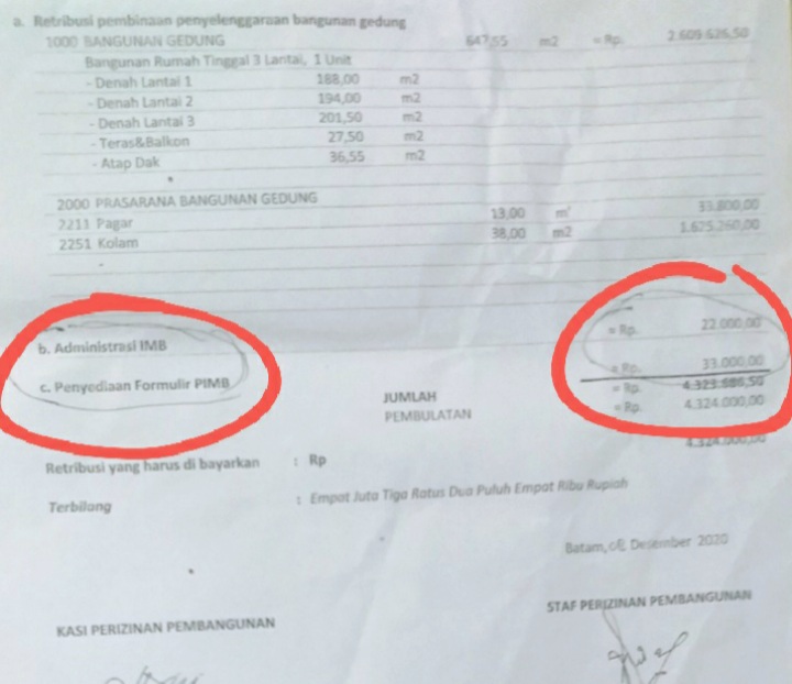 “Ada dua orang oknum pejabat yang dipanggil untuk dimintai keterangan terkait laporan dugaan pungli ini, Disebut-sebut, Jumlah pungli setiap pengurusan besarnya Rp 55.000. Biaya ini seharusnya sudah mencakup Map dan Form Formulir IMB. Tetapi tidak sediakan. Realitanya pemohon tetap diharuskan membeli Map dan Form Formulir IMB.” Ungkap Narasumber.