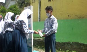 Dengan kata lain, protokol kesehatan menjaga jarak masih diterapkan di ruang kelas SMPN 1 Kibin Setiap murid pun masih mengenakan masker. (Syt)