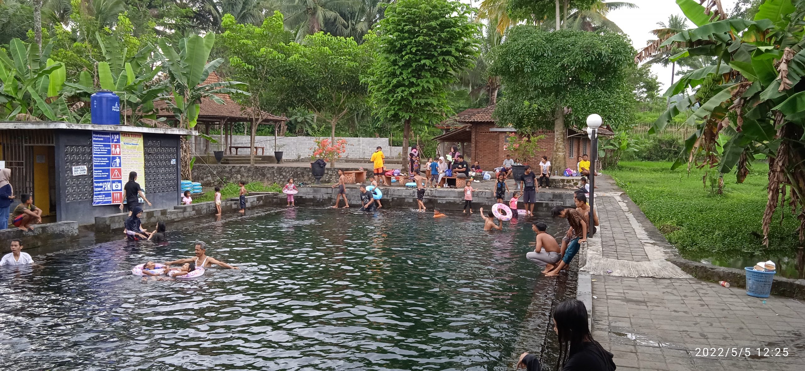 Seperti terlihat salah satu tempat di Dusun Mudal, Desa Sawangan Kecamatan Sawangan Kabupaten Magelang yakni wisata Kolam Renang Sendang Mudal dipadati pengunjung, Kamis (5/5/2022).