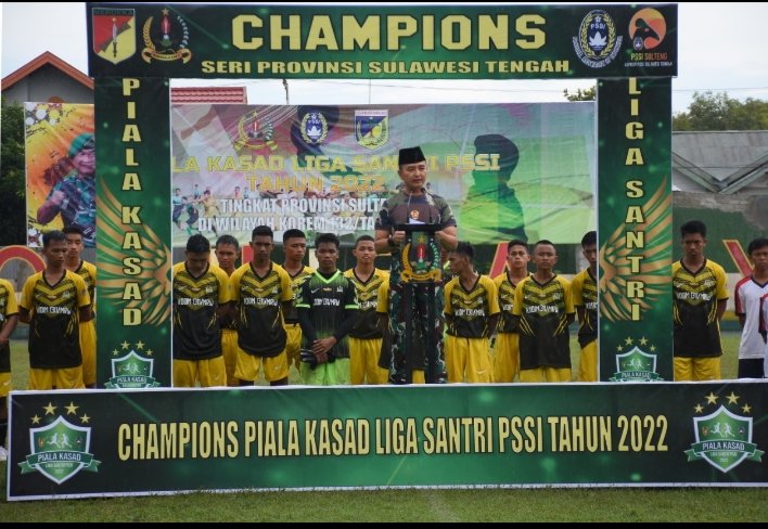NASIONALXPOS.CO.ID, PALU – Danrem 132/Tdl Brigjen TNI Toto Nurwanto menutup pelaksanaan kejuaraan sepak bola Liga Santri Piala Kasad 2022 Wilayah Sulawesi Tengah (Sulteng), Rabu (10/8/2022) bertempat di Lapangan Sepak Bola Faqih Rasyid Jl. DR. Abdurrahman Saleh No.94, Birobuli Utara, Kecamatan Palu Selatan, Kota Palu, Sulteng.