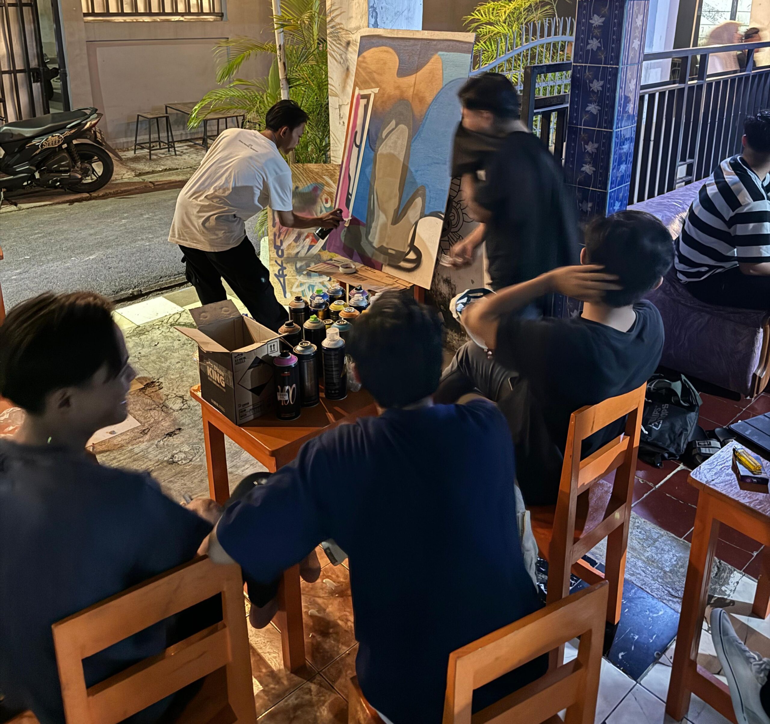 NASIONALXPOS.CO.ID, TANGERANG SELATAN – Untuk pertama kalinya maahad kopi membuat acara mural yang bertemakan ngabuburit sembari nyeni, Kegiatan ini dilaksanakan untuk menambah daya tarik muda-mudi, terutama dalam bidang seni sambil mengisi waktu menjelang buka, yang dimana owner kedai ini bekerjasama dengan mural artis asal jakarta (drainz) untuk mengisi live painting sekaligus memberi pengetahuan tentang macam-macam seni modern.