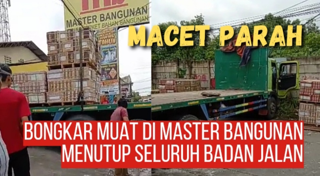 Macet Parah Imbas Bongkar Muat di Master Bangunan Menutup Seluruh Badan Jalan