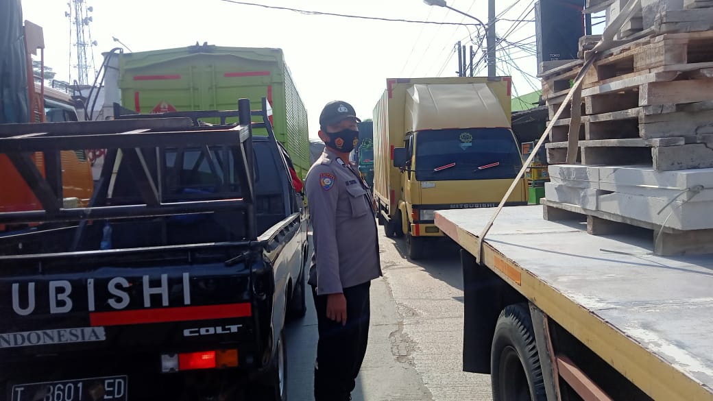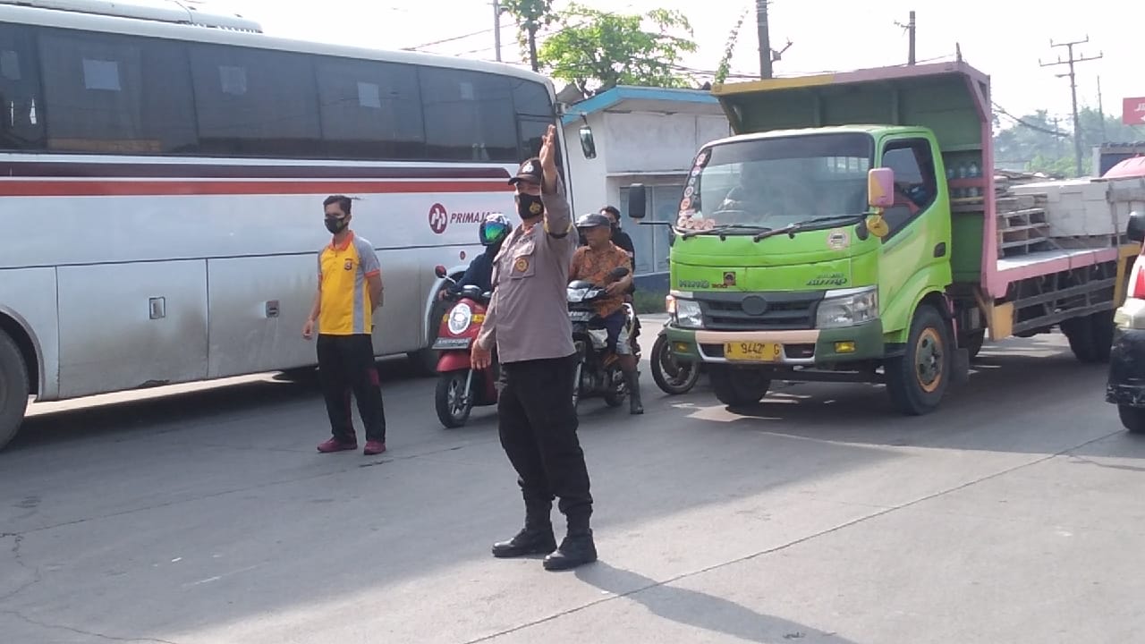 Macet Total Perempatan Asem, Anggota Bhabinkamtibmas Polsek Cikande Sigap Urai Kemacetan
