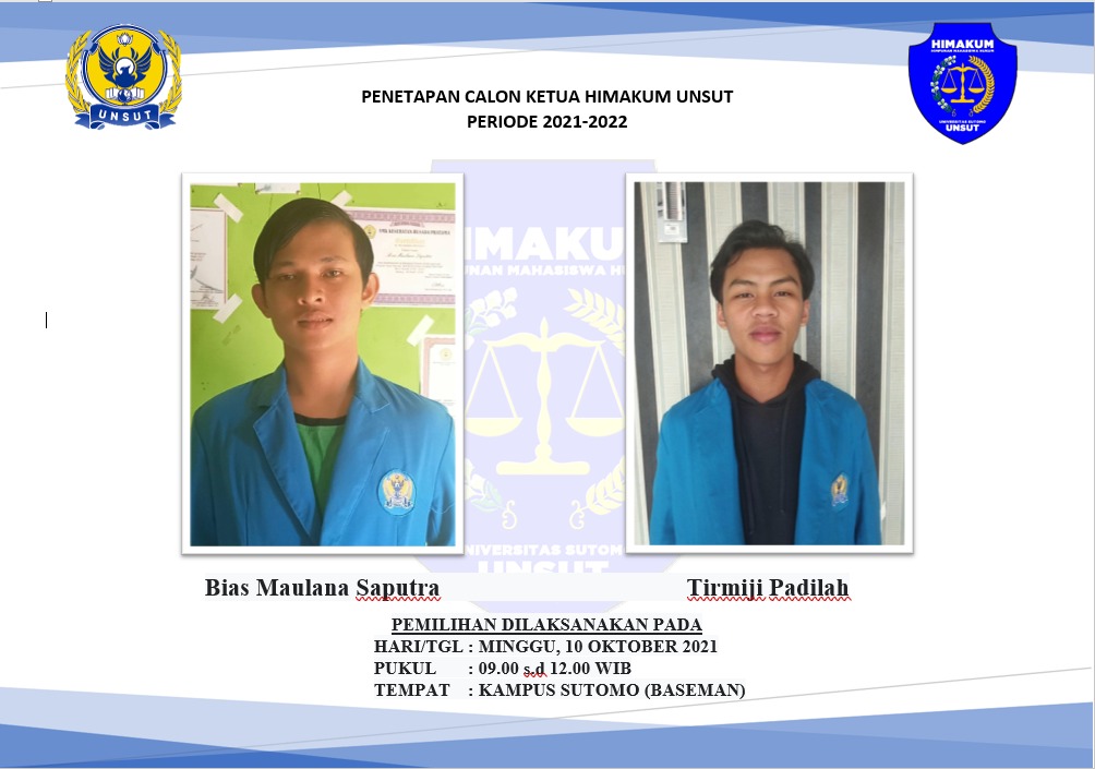 Mubes yang pertama kali ini diadakan untuk memilih ketua baru Himpunan Mahasiswa Hukum (Himakum). Dalam pemilihan tersebut, dua nama diusulkan menjadi calon ketua Himakum.