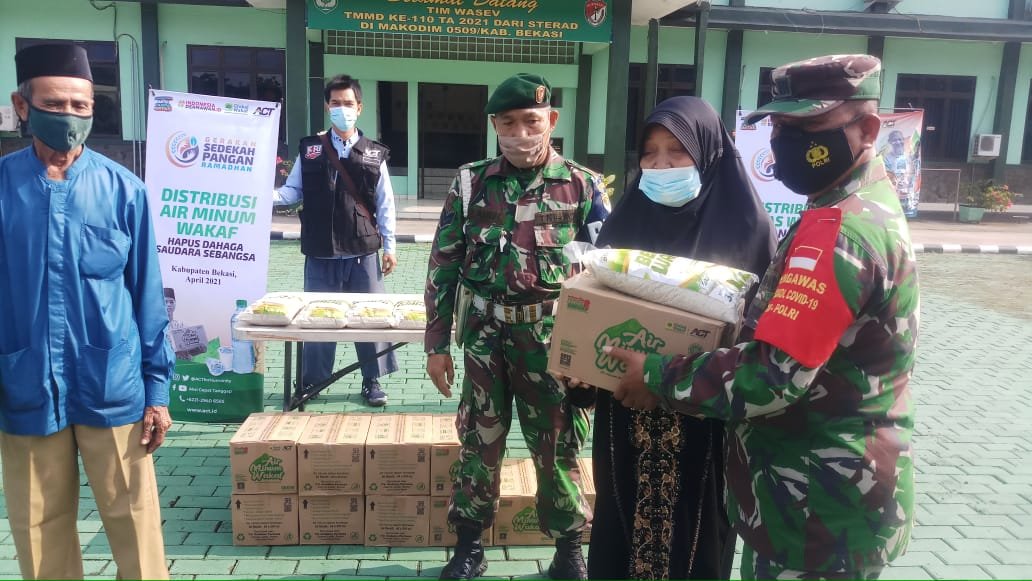 Sambutan pertama dari kepala cabang Aksi Cepat Tanggap ( ACT ) kabupaten bekasi, Linceu, mengutarakan, bahwa ACT berkolaborasi dengan kodim 0509 kabupaten bekasi akan membagikan sedikit sembako untuk membantu masyarakat saat di bulan suci Ramadhan.