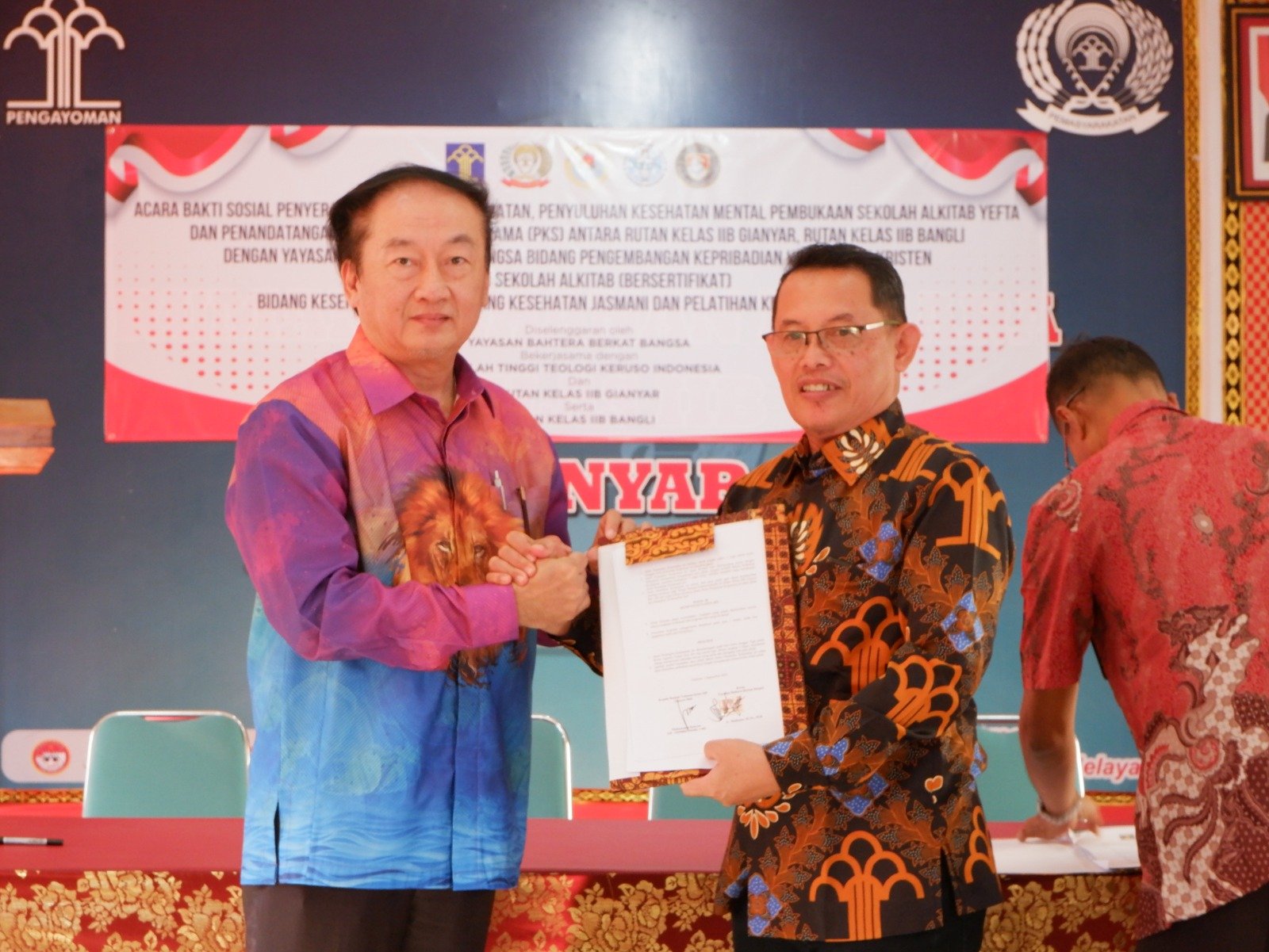 Bertempat di Aula Sahardjo Rutan Gianyar, penandatangan perjanjian kerjasama dilaksanakan langsung oleh Kepala Rumah Tahanan Negara Gianyar, Muhammad Bahrun dengan Ketua Yayasan Bahyera Berkat Bangsa, Mulianto.