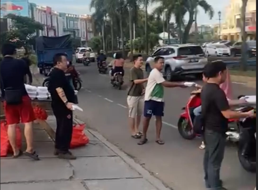 Diketahui management Trenz terlihat antusias membagikan takjil kepada pengendara sepeda motor maupun mobil yang melintas di halaman depan Gedung Trenz.