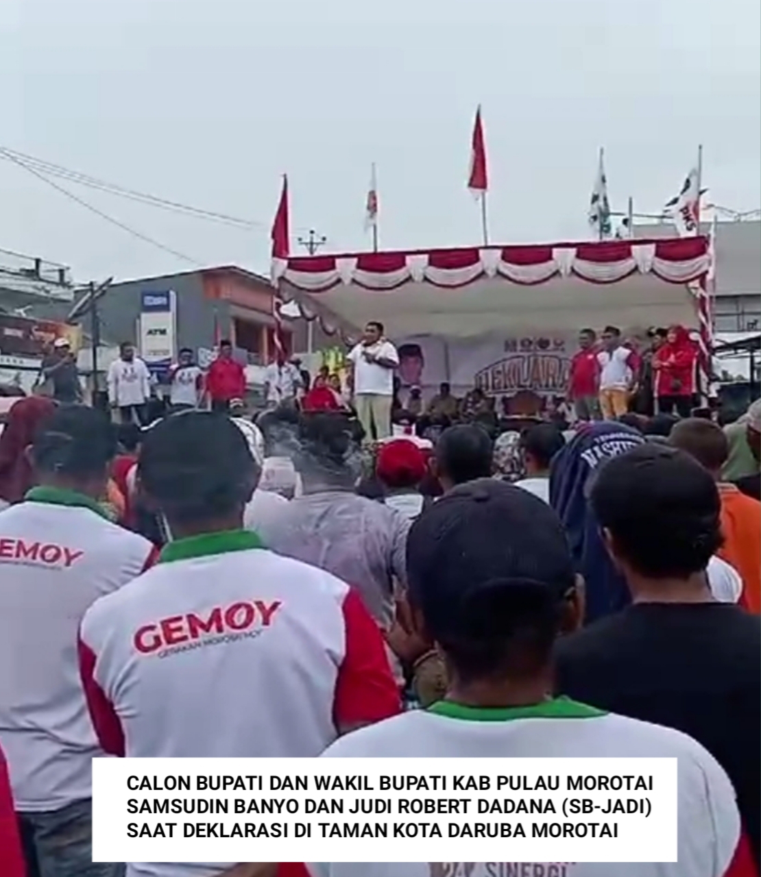 NASIONALXPOS.CO.ID, MOROTAI – Masyarakat Kabupaten Pulau Morotai bakal dipimpin oleh Bupati Samsudin Banyo dan Judi Robert Dadana (SB-Jadi) calon Bupati dan wakil Bupati yang di usung oleh 4 partai besar, jika Allah berkehendak kedua pemimpin ini akan membawa keberkahan bagi Rakyat Morotai.