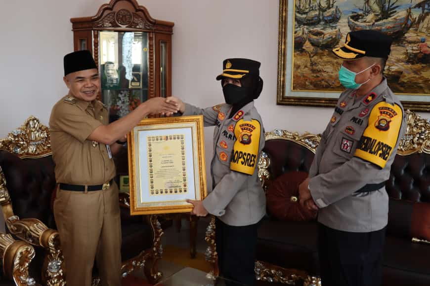 Penghargaan tersebut diserahkan Kapolres Tebo AKBP. Fitria Mega, M.Psi,Psi di rumah Dinas Bupati Tebo, Senin pagi (04/07/2022).