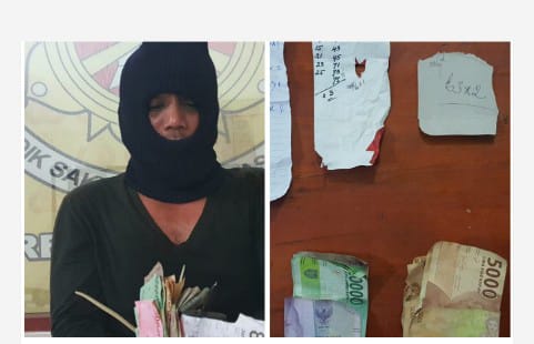 Setelah diamankan dan diinterogasi, ia mengatakan identitasnya, kemudian setelah diperintahkan untuk mengeluarkan barang yang ada padanya, ditemukan 1 unit Hp merk Nokia warna hitam-silver dimana pada SMS terkirim terdapat angka tebakan diduga judi jenis Hongkong, 3 lembar potongan kertas berisi angka tebakan diduga judi jenis Hongkong, 1 buah pulpen warna hitam dan uang sebesar 280 ribu.