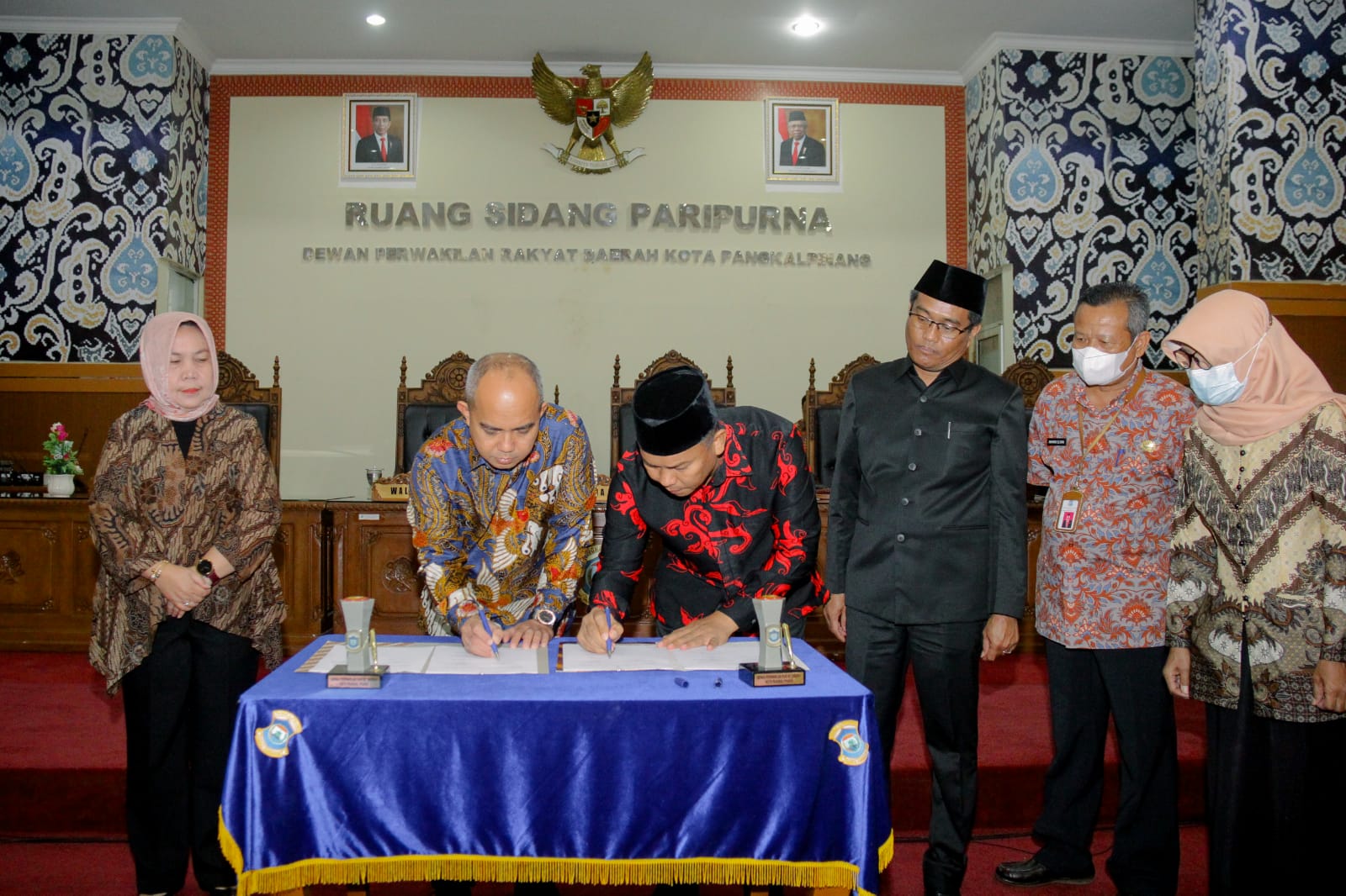 NASIONALXPOS CO.ID, PANGKALPINANG – Walikota Pangkalpinang, Maulan Aklil (Molen) menghadiri rapat Paripurna Ke XXVII Masa Persidangan ke III Tahun 2022 DPRD Kota Pangkalpinang dalam agenda Penandatanganan Nota Kesepakatan terhadap Perubahan Kebijakan Umum Anggaran (KUA) dan Perubahan Prioritas, Plafon Anggaran Sementara (PPAS) Kota Pangkalpinang Tahun Anggaran 2022, Kamis (18/08/22) diruang Paripurna DPRD Kota Pangkalpinang.