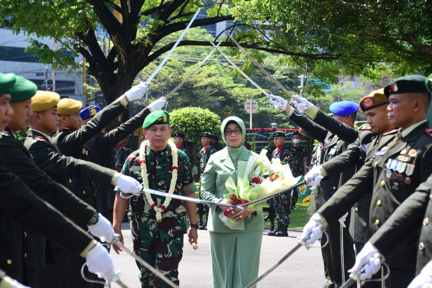Tradisi penyambutan Pangdam II/Swj beserta Istri sebagai warga baru Kodam II/Swj tersebut, disambut dengan suka cita dan rasa bangga oleh segenap Prajurit dan PNS Kodam II/Swj.