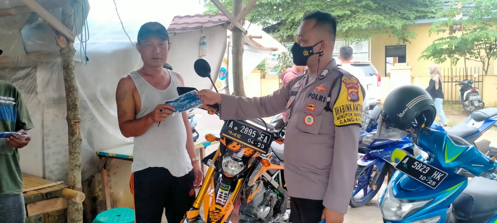 NASIONALXPOS.CO.ID, SERANG – Bhabinkamtibmas Polsek Cikeusal Polres Serang Polda Banten merupakan motor dan ujung tombak Kepolisian yang bersentuhan langsung dengan masyarakat guna menciptakan situasi kamtibmas yang aman dan kondusif serta mengedukasi masyarakat untuk bisa beradaptasi kebiasaan baru dengan membagikan masker pada masyarakat di Kp. Bagoang Desa Gandayasa Kecamatan Cikeusal Kabupaten Serang Provinsi Banten Brigpol M.M. Andri melakukan kegiatan rutin yaitu sambang desa binaannya pada hari Minggu (06/03/2022) jam 11.30 WIB.