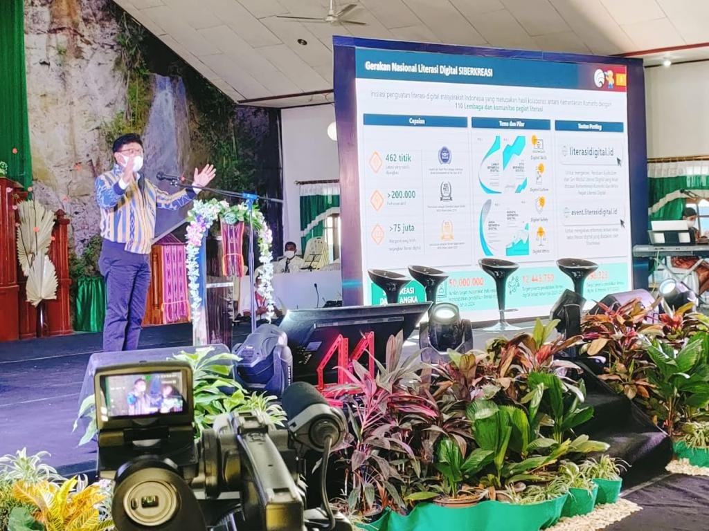 “Pembangunan infrastruktur internet ini tentunya perlu didukung oleh peningkatkan kualitas penggunanya pula. Kementerian Kominfo melakukan penguatan kualitas masyarakat pengguna internet ini melalui inisiasi Indonesia Makin Cakap Digital, yang mencakup penguatan kecakapan yang komprehensif di seluruh lini, yakni di tingkat dasar melalui Gerakan Nasional Literasi Digital (GNLD) Siberkreasi Kementerian Kominfo, yang setiap tahunnya diharapkan dapat meliterasi 12,5 juta masyarakat hingga mencapai total akumulasi 50 juta masyarakat pada tahun 2024,” seru Johny.