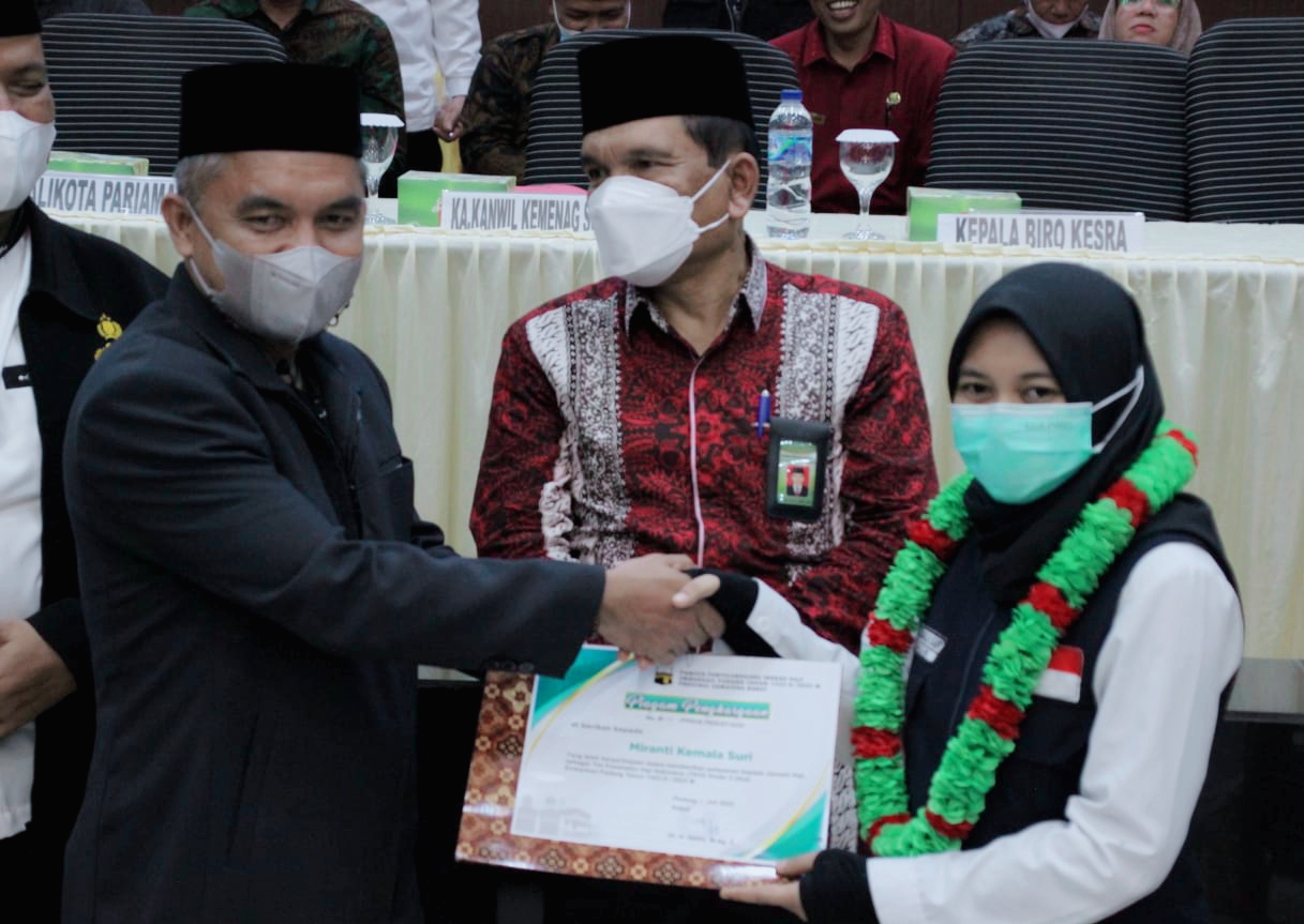 Di kesempatan yang sama, juga diserahkan piagam penghargaan dari Kanwil Kemenag Sumbar kepada Petugas Jamaah Haji Daerah Sumatera Barat yang telah mendampingi jamaah haji dalam menunaikan rukun islam ke lima.