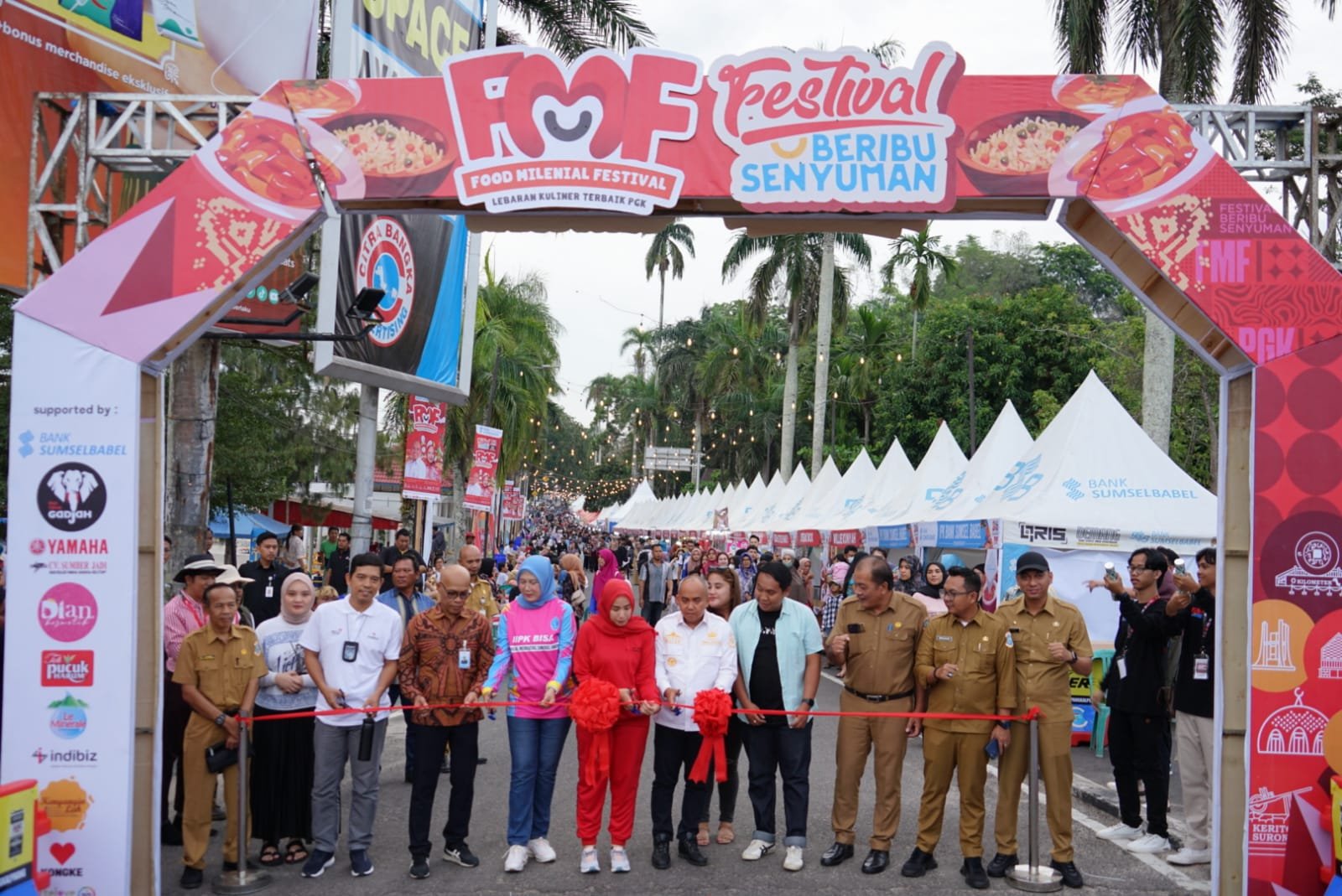 NASIONALXPOS.CO.ID, PANGKALPINANG – Founder Food Millenial Festival (FMF) ke 8 dibuka Ketua Tim Penggerak Pemberdayaan Kesejahteraan Keluarga (TP PKK) Kota Pangkalpinang Monica Haprinda di dampingi suami, Dr. H. Maulan Aklil atau Molen di Depan Rumah Dinas Wali Kota Pangkalpinang, Selasa (7/11/2023).