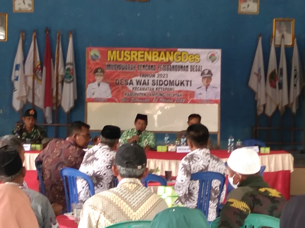 NASIONALXPOS.CO.ID, LAMSEL – Pemdes way Sidomukti, Melaksanakan musrenbang penetapan Rencana Kerja Pemerintah Desa (RKPDes) di tahun 2023, Yang dilaksanakan di Balai Desa Way Sidomukti, Kecamatan Ketapang, Kabupaten Lampung Selatan. Jumat, (28/10/22).