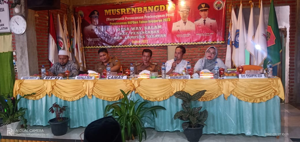 NASIONALXPOS.CO.ID, LAMSEL – Pemerintah Desa Way Kalam, Kecamatan Penengahan, Kabupaten Lampung Selatan, Provinsi Lampung, menggelar Musyawarah Perencanaan Pembangunan Desa (Musrenbangdes) Penyusunan RKPDes tahun anggaran 2023, di Balai Desa Way Kalam, Selasa, (27/9/2022).