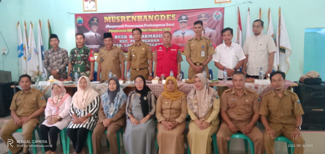 NASIONALXPOS.CO.ID, LAMSEL – Pemdes Banjarmasin melaksanakan MusrembangDes yang dilaksanakan di balai desa Banjarmasin Kecamatan Penengahan Kabupaten Lampung Selatan,Senin 26/09/2022