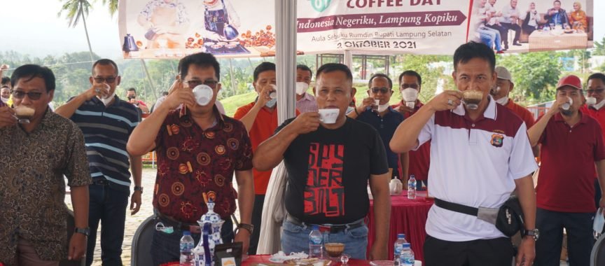 NASIONALXPOS.CO.ID, LAMPUNG SELATAN – Peringatan Hari Kopi Sedunia di Provinsi Lampung diwarnai dengan Kampanye Minum Kopi Hitam Lampung bersama Gubernur, bupati/wali kota dan para pejabat dari Pemerintah Provinsi dan Kabupaten/Kota se-Provinsi Lampung.