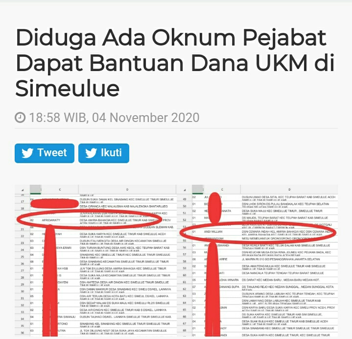 Saya berpendapat seharusnya bantuan dana UKM itu harus tepat sasaran kepada masyarakat yang membutuhkan. Sangat disayangkan ini bisa terjadi, nama saya nisa tercatut didalam daftar penerima,” Pungkas Andi Millian kepada Nasionalxspos.co.id Rabu (05/10/2020)