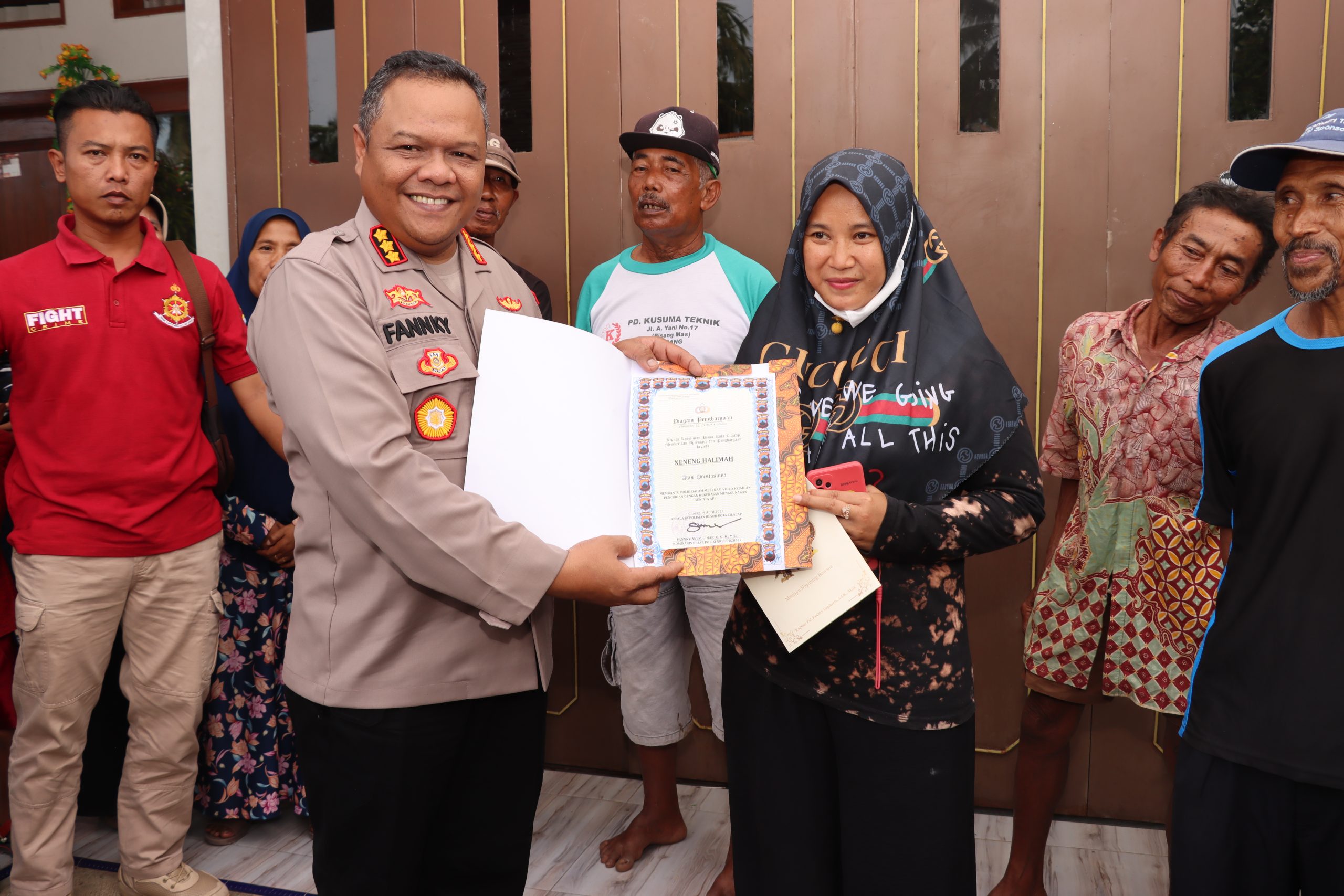 NASIONALXPOS.CO.ID, CILACAP- Kapolresta Cilacap Kombes Pol Fannky Ani Sugiharto memberikan penghargaan kepada Neneng Halimah warga Desa Kaliwungu Kecamatan Kedreja Kabupaten Cilacap.