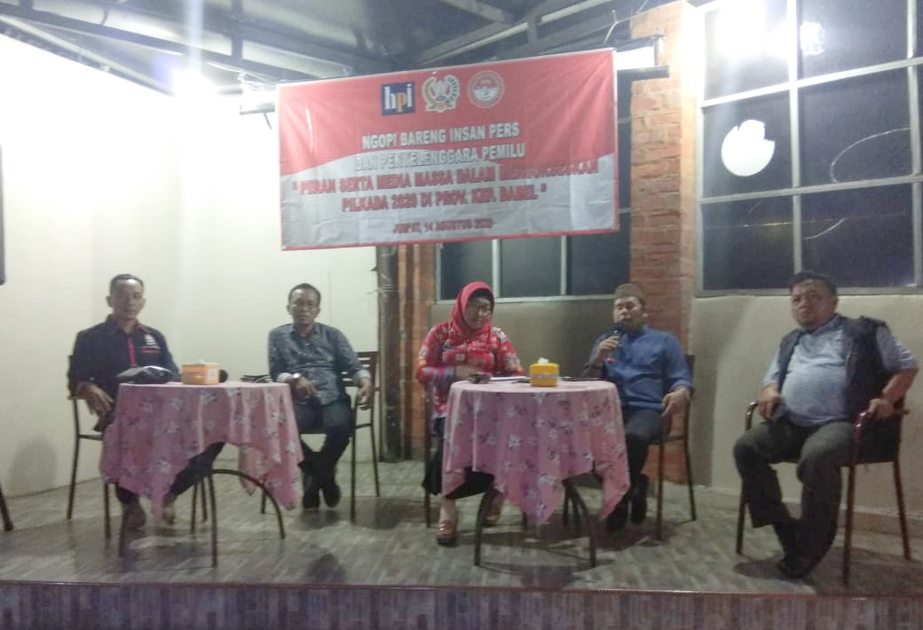 Dalam hal ini,tiga organisasi yang bergabung dalam Forum Pers Bangka Belitung Bersatu (FPBBB) nyakni, HPI,PWRI dan FPII gelar Ngopi bareng Insan Pers dan Penyelenggaraan Pemilu ,yang mana diskusi bertajuk” Peran Serta Media Massa dalam Menyukseskan Pilkada 2020 bersama narasumber Ketua KPU Babel Davitri , Dewi perwakilan Bawaslu dan Agus Poniran dan Syaril dari Tokoh Pers Babel , di Hotel Puri 56 Jumat malam 14/8/2020