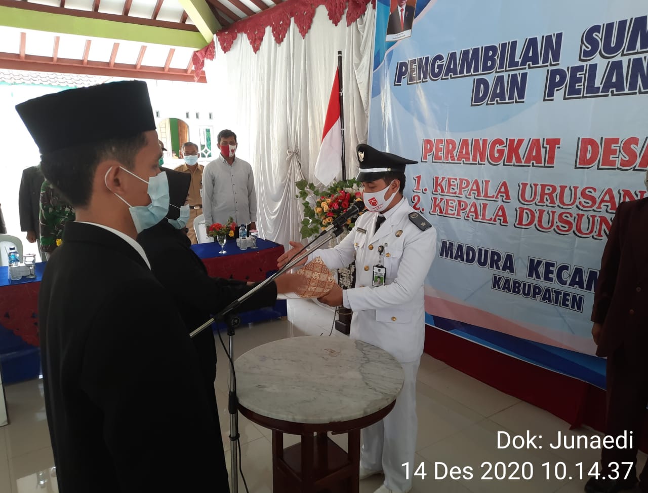 Kepala Desa Madura, Nursidik mengambil sumpah jabagan serta melantik kedua perangkat desa tersebut.