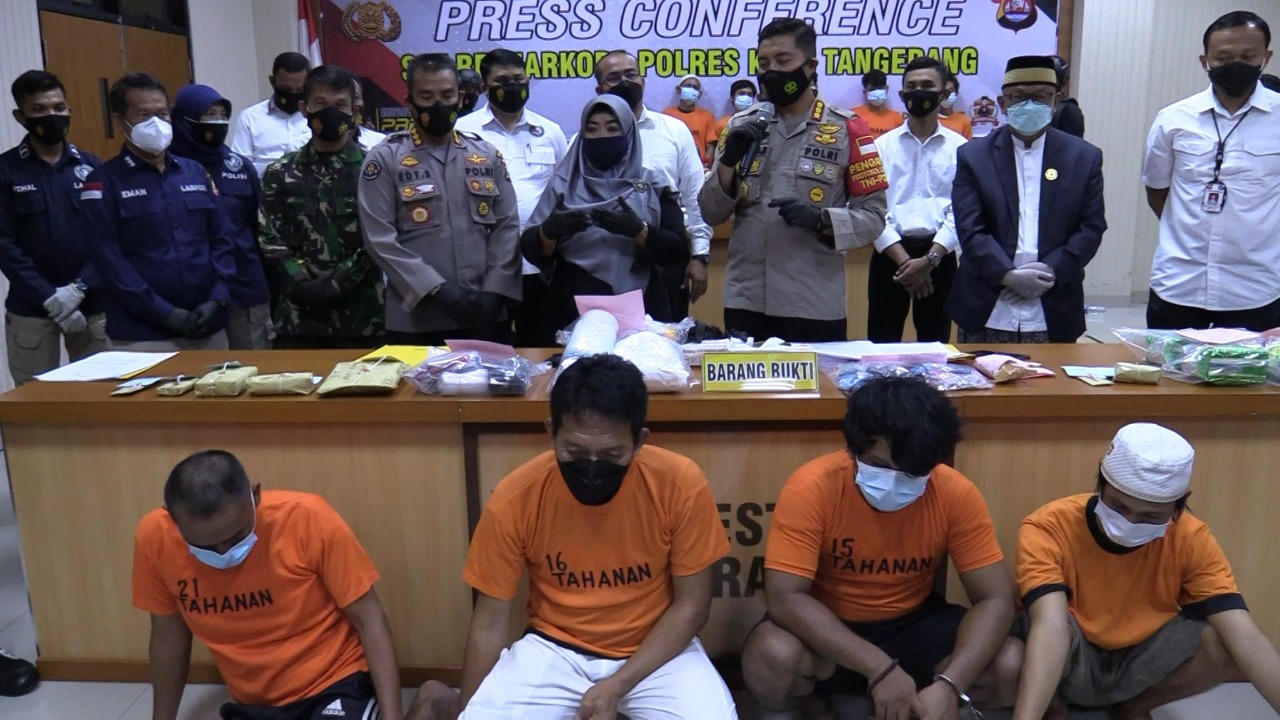 “Tersangka NA kami tangkap bersama 5 temannya saat pesta narkoba jenis sabu,” kata Kapolresta Tangerang Kombes Pol Wahyu Sri Bintoro, saat konferensi pers di Aula Polresta Tangerang Polda Banten, Rabu (31/3/2021).