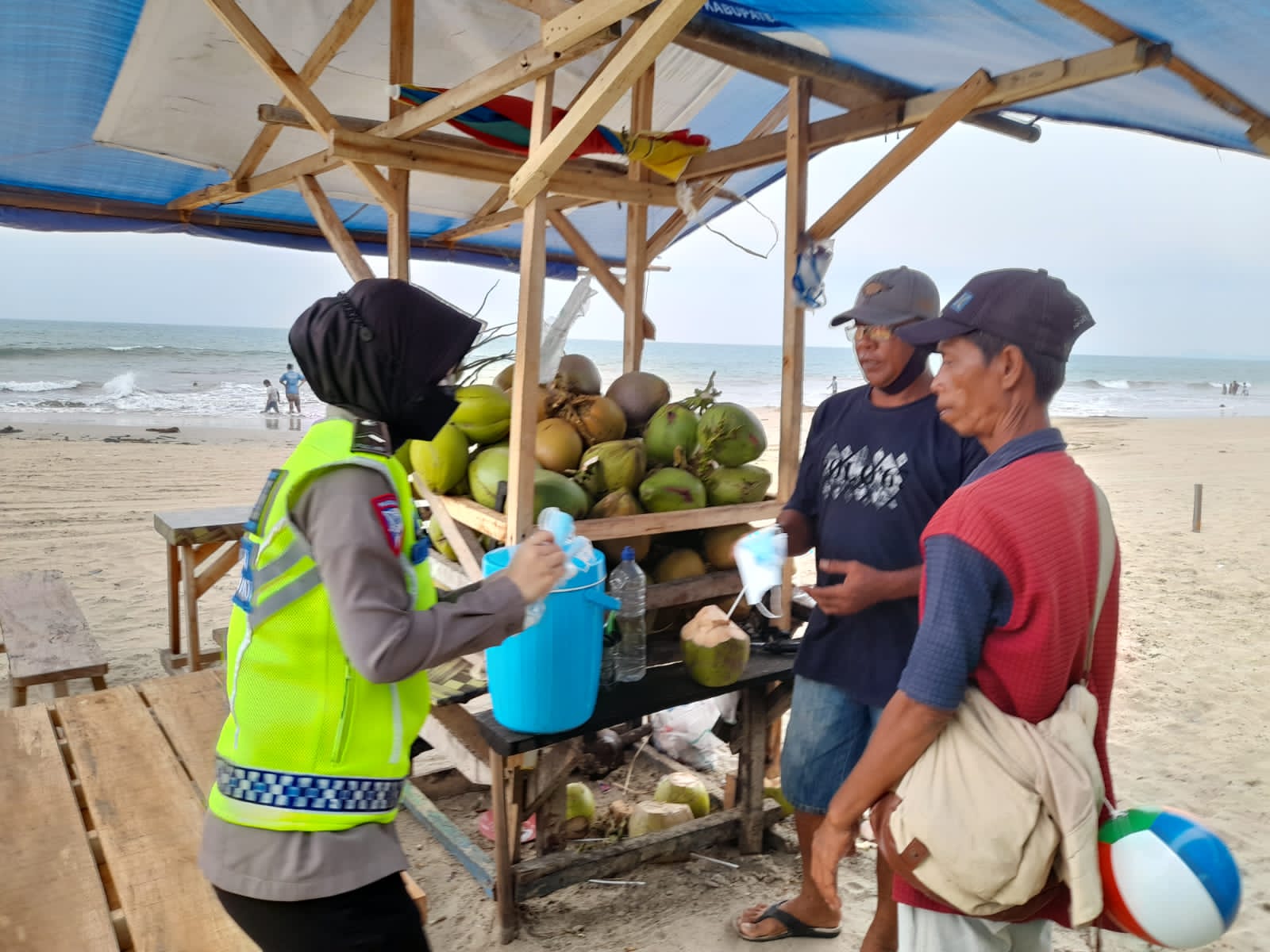 “Satgas preemtif dan preventif melaksanakan kegiatan ke daerah tempat-tempat keramaian orang-orang dan rawan terjadi pelanggaran, baik pelanggaran lalu lintas maupun pelanggaran prokes Covid-19, seperti jalur wisata Anyer – Carita dengan cara membagi masker, sosialisasi prokes Covid-19, imbauan dan sosialisasi tentang kepatuhan berlalu lintas yang aman, lancar dan tertib,” kata Dirlantas Polda Banten Kombes Pol Rudy Purnomo, S.I.K., M.H., melalui Kasubdit Kamsel Kompol Drs.Dodid Prastowo.S., Skom, Minggu (03/10/2021).