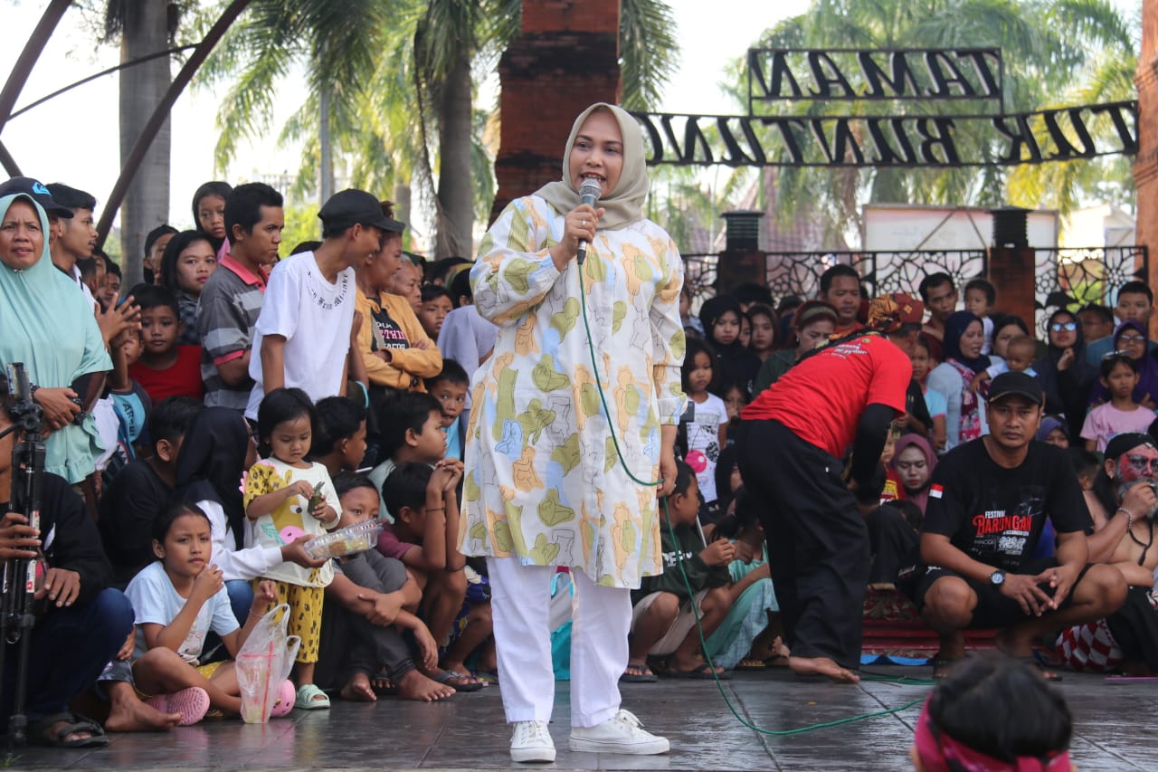 Sementara itu, untuk pementasan dalam acara halal bihalal di area Taman Seribu Lampu, ditampilkan dari perwakilan 10 kelompok barongan. (Riyan)