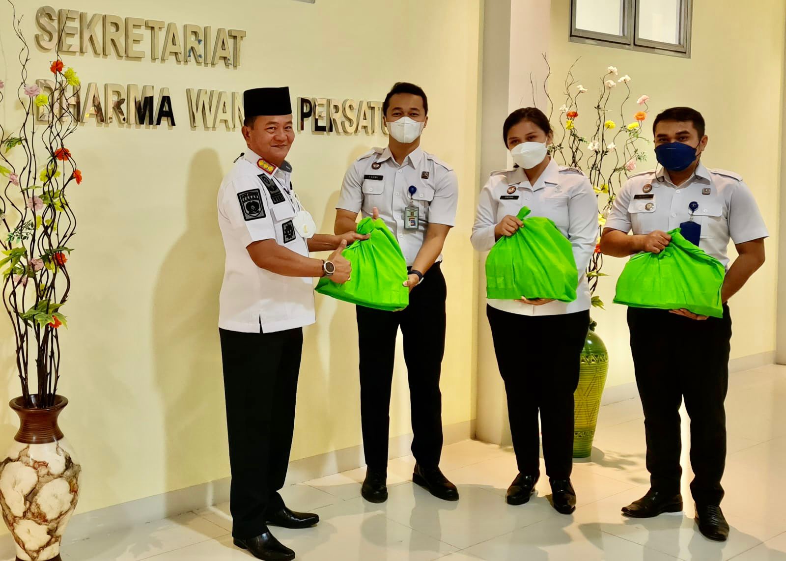 Kepala lapas kelas IIA cikarang, penjabat struktural dan seluruh staf, pembagian paket vitamin untuk daya tahan tubuh di berikan pada para Pegawai Lapas Kelas IIA Cikarang