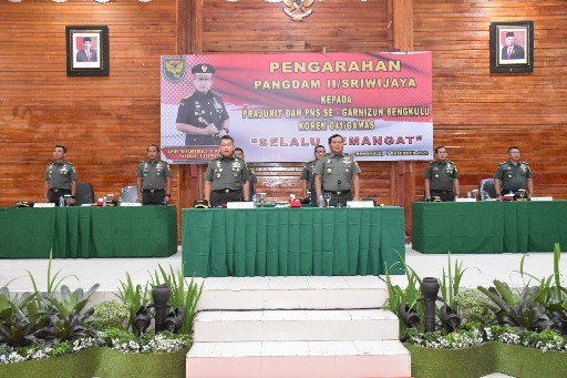 Hadir dalam pengarahan tersebut, Danrem 041/Gamas, Kasrem 041/Gamas beserta para Kasi Kasrem 041/Gamas, Asrendam II/Swj, para Asisten Kasdam II/Swj, Kapendam ll/Swj dan Dandim serta Dan/Kabalak satuan jajaran Korem 041/Gamas. (*)