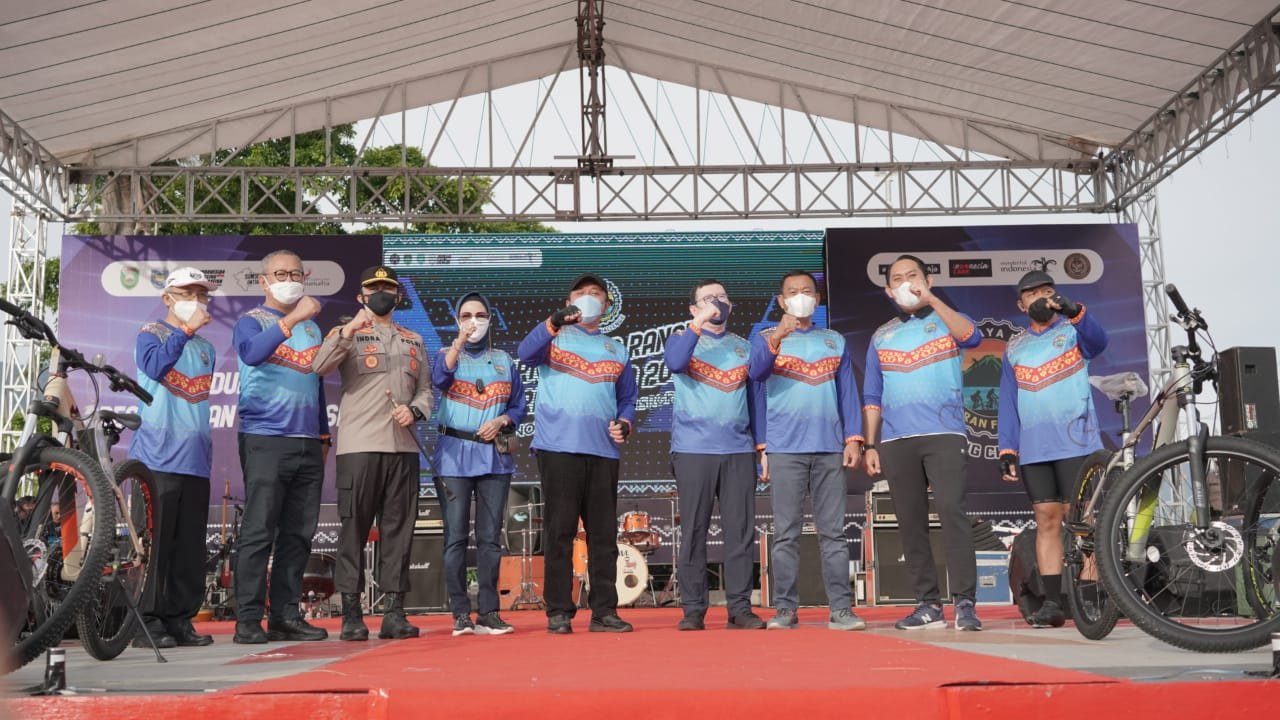 NASIONALXPOS.CO.ID, OKU SELATAN – Pangdam II/Sriwijaya Mayjen TNI Agus Suhardi, menghadiri pelaksanaan Event Sriwijaya Ranau Gran Fondo (SRGF) Cycling Challenge 2021, di Kawasan Danau Ranau Kabupaten OKU Selatan, Sabtu (13/11/2021).