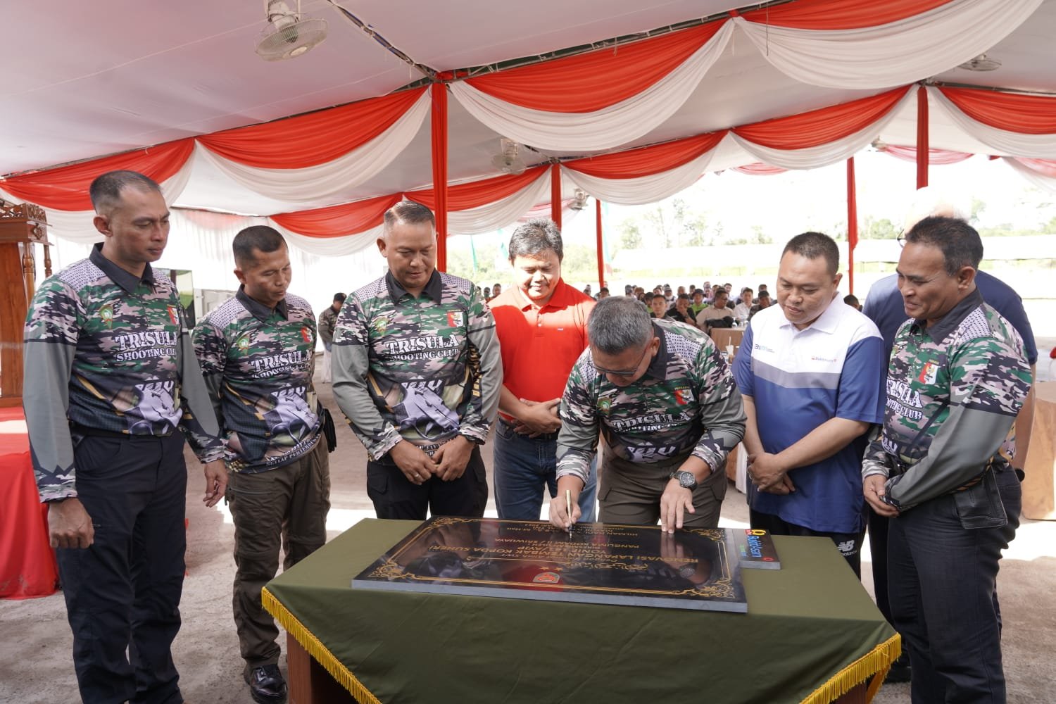 Peresmian Lapangan Tembak Yonif 141/AYJP ini, ditandai dengan Penandatanganan prasasti oleh Pangdam II/Sriwijaya Mayjen TNI Hilman Hadi.
