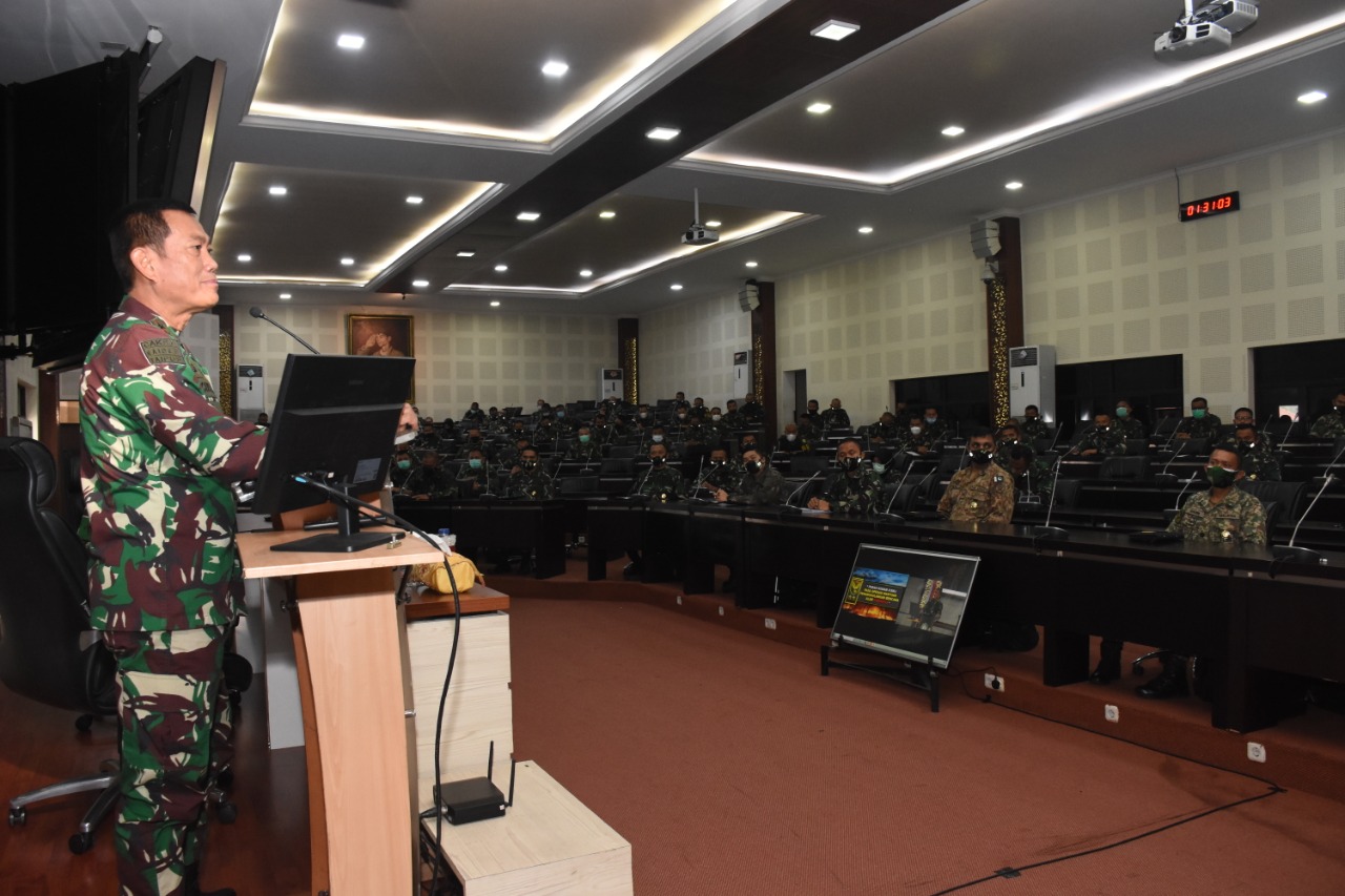 NASIONALXPOS.CO.ID, PALEMBANG – Perwira Siswa (Pasis) Dikreg LX Seskoad, terima ceramah pembekalan dari Pangdam II/Sriwijaya Mayjen TNI Agus Suhardi, dengan tema, “Peran Kodam II/Sriwijaya Pada Operasi Bantuan Penanggulangan Bencana Alam Karhutla”, di Gedung Gatot Subroto Seskoad, Jalan Gatot Subroto No 96 Bandung, Senin (24/5/2021).