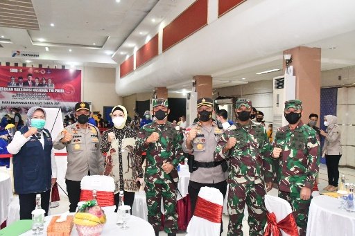 Melalui Vicon Presiden RI Joko Widodo, mengucapkan terima kasih kepada Kapolda, Pangdam, Gubernur dan seluruh Pimpinan Daerah yang telah mendukung untuk menyukseskan pelaksanaan Vaksinasi Massal Covid-19 yang dilaksanakan secara serentak di seluruh wilayah Indonesia.