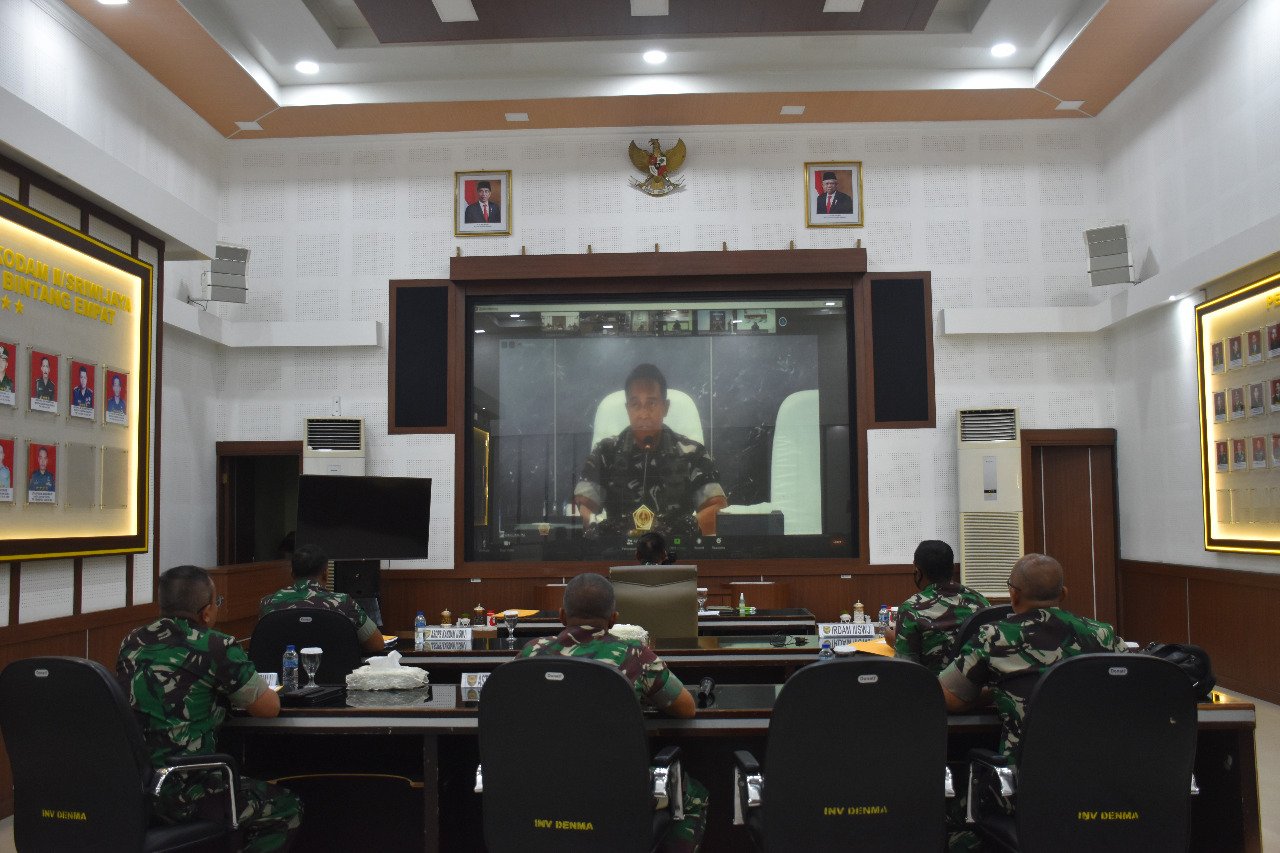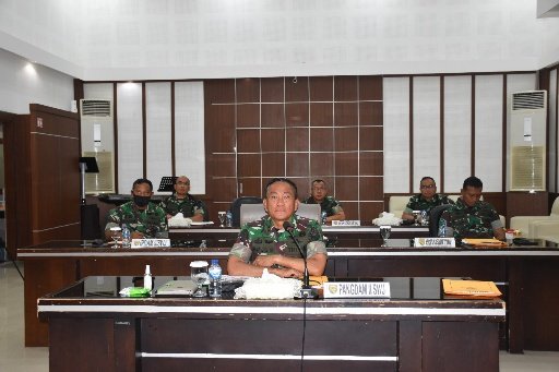 Video Conference yang digelar tersebut, dipimpin langsung oleh Panglima TNI Jenderal TNI Andika Perkasa langsung dari Mabes TNI – Cilangkap, Jakarta.